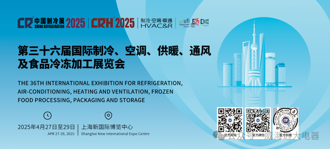 第三十六屆國際制冷、空調、供暖、通風及食品冷凍加工展覽會(簡稱“2025中國制冷展”)將于2025年4月27-29日在上海新國際博覽中心舉辦。本屆展會以“智聯冷暖,共享未來”(Intelligence-powered cooling and heating for shared future)為主題,設置W1-W5/E1-E5十個展館,展覽面積115,000平方米,預計將吸引全球數十個國家和地區(qū)的1,000余家企業(yè)和機構參展,80,000余名專業(yè)觀眾和買家參觀洽談,同期舉辦主題論壇、專題研討會、技術交流會、創(chuàng)新產品發(fā)布儀式、金獎產品及年度產品發(fā)布儀式等70余場會議活動,更有多個主題示范專區(qū)精彩亮相。